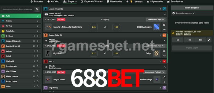 O 688bet oferece uma grande seleção de opções de apostas em e-sports com probabilidades competitivas